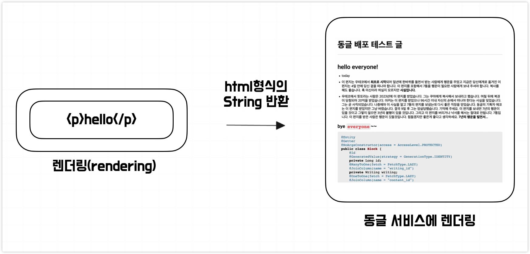 또한 동글 객체를 html string으로 변환하여 유저에게 업로드한 글을 보여준다.