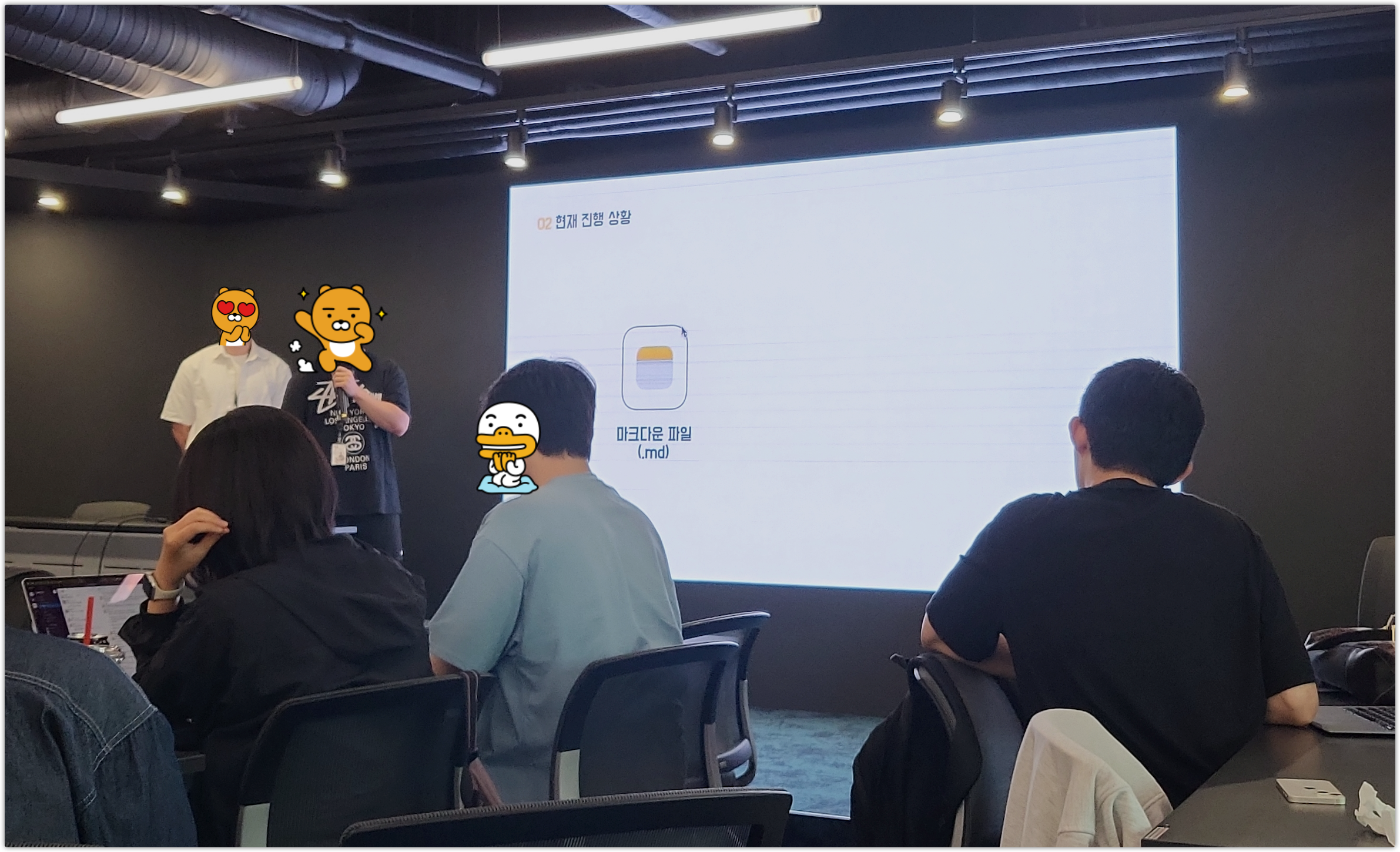 사진은 없지만 시연을 내 맥북으로 해야해서, 나도 잠깐 발표했었다..ㅎ